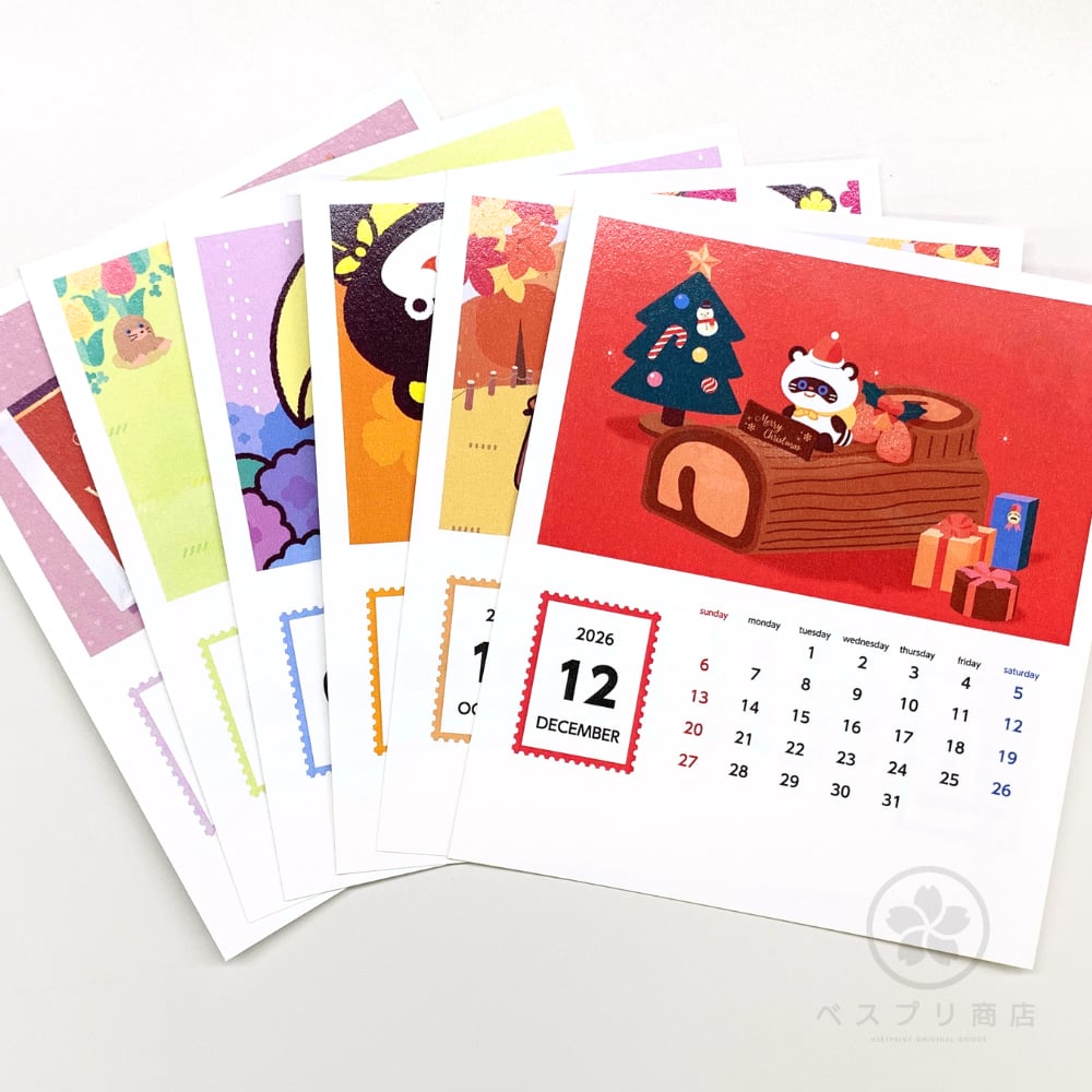 ベストプリントの公式キャラクター「ポコ助」が彩る2026年の卓上カレンダーです。